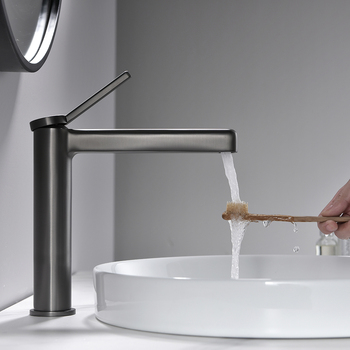 Hộ gia đình tiết kiệm nước lưu vực Mixer tap Brushed Gun kim loại kết thúc duy nhất xử lý nóng lạnh